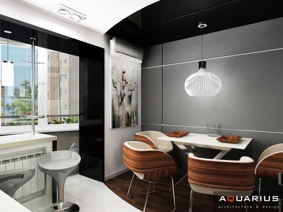 Интерьер однокомнатной квартиры, расположенной в городе Новочеркасске по проспекту Баклановскому, выполнен в стиле хай-тек. Контраст цветов уравновешивается сдержанностью линий и форм. Металл и глянцевые поверхности – неотъемлемые детали стиля хай-тек. Уют квартире придают элементы освещения и комнатные растения.