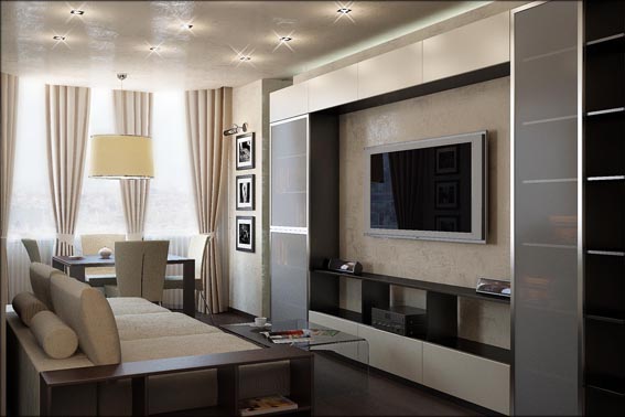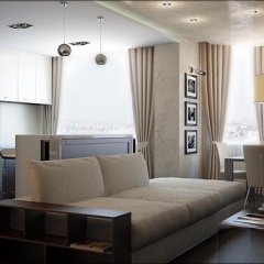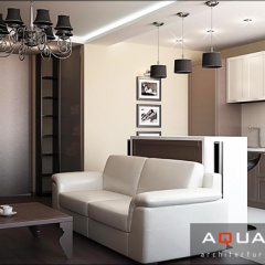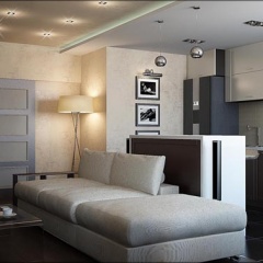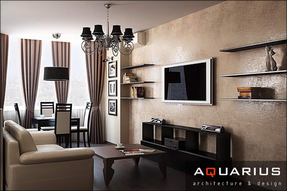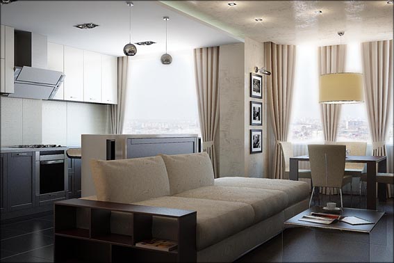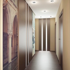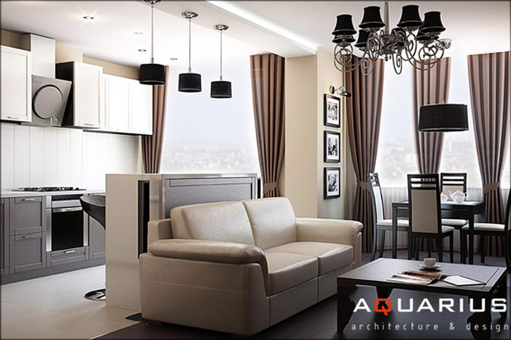 Трехкомнатная квартира, пер. Соборный, г. Ростов-на-Дону, выполнена в современном стиле. Светлую гамму, разбивают темные светильники и контрастная мебель. В детской песочные тона дополняются сиренево-салатными акцентами.