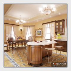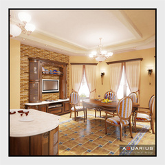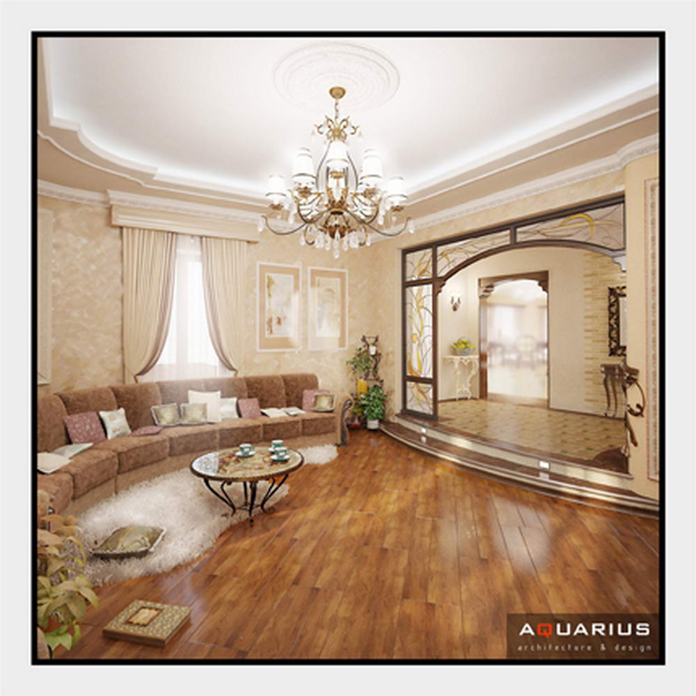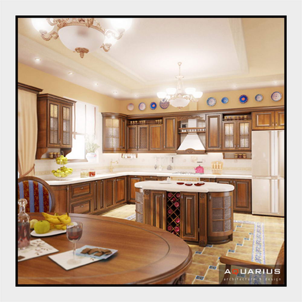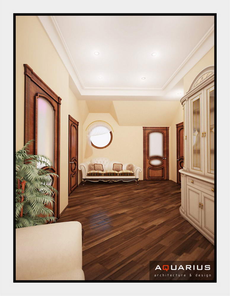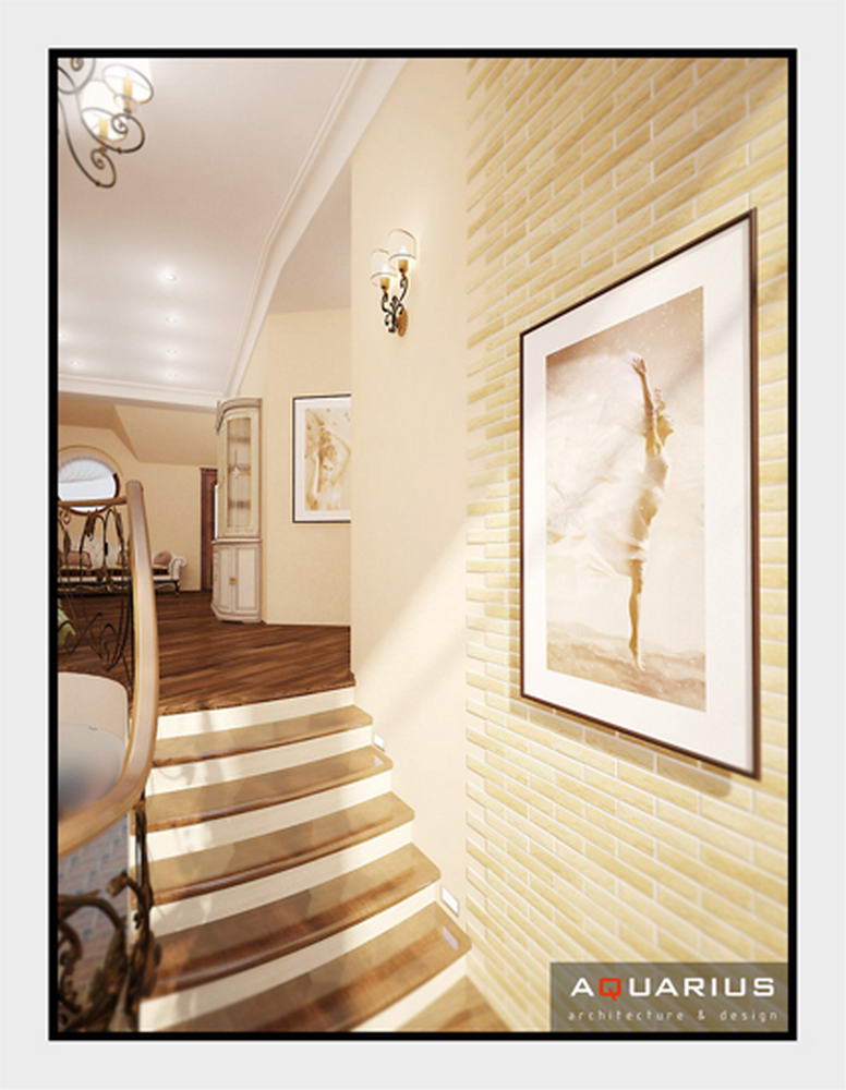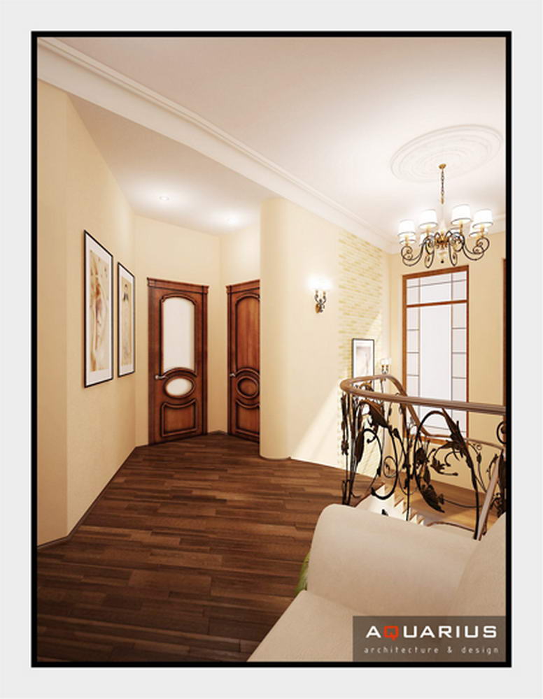 Дизайн двухэтажного дома по улице Семейной, г. Ростов-на-Дону, выполнен в классическом стиле. В интерьере гармонично сочетаются кованые элементы лестницы и массивная мебель из ценных пород дерева. Для классического стиля традиционно используются качественные и дорогостоящие материалы. Высоту потолков подчеркивают люстры.