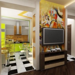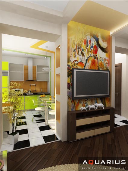 Дизайн этой однокомнатной квартиры в Ростове-на-Дону выдержан в ярком и динамичном современном стиле. Насыщенные оттенки мебели и отделки стен хорошо сочетаются друг с другом, использованы различные фактуры поверхности, что создает гармоничную и уютную обстановку.