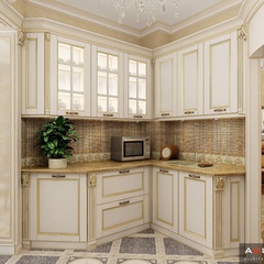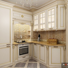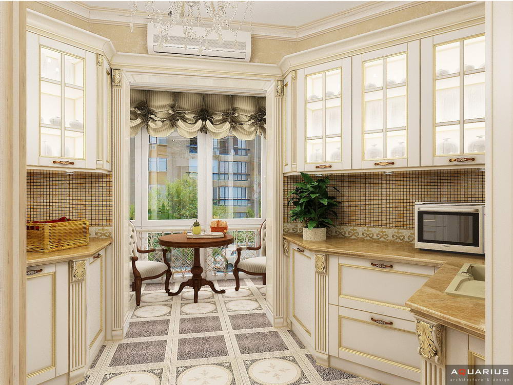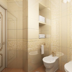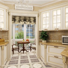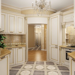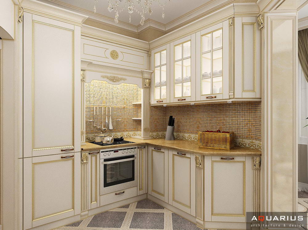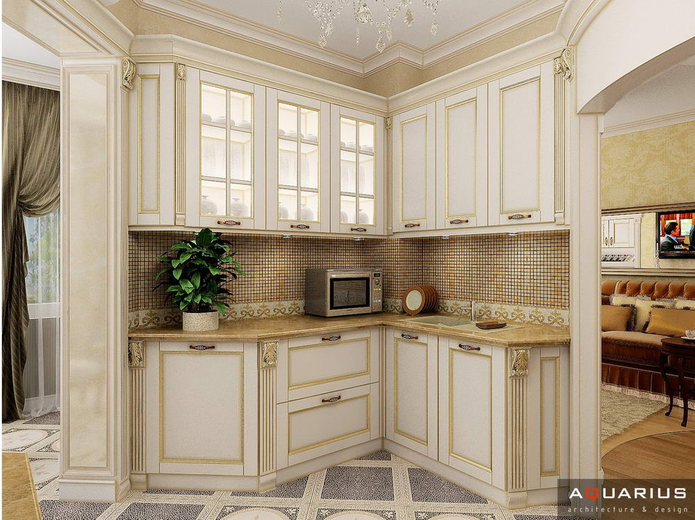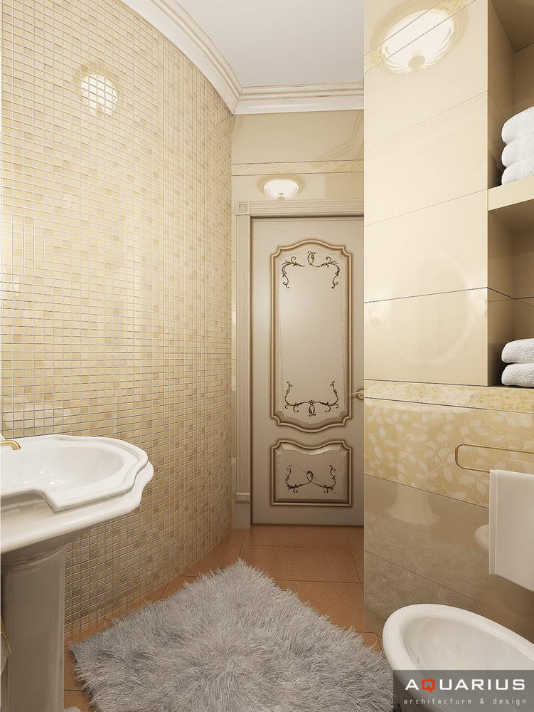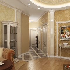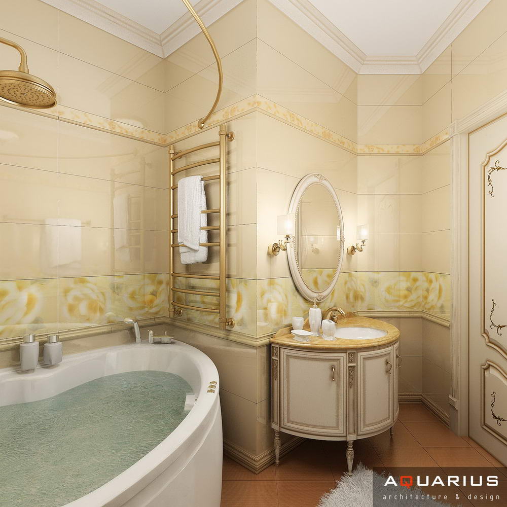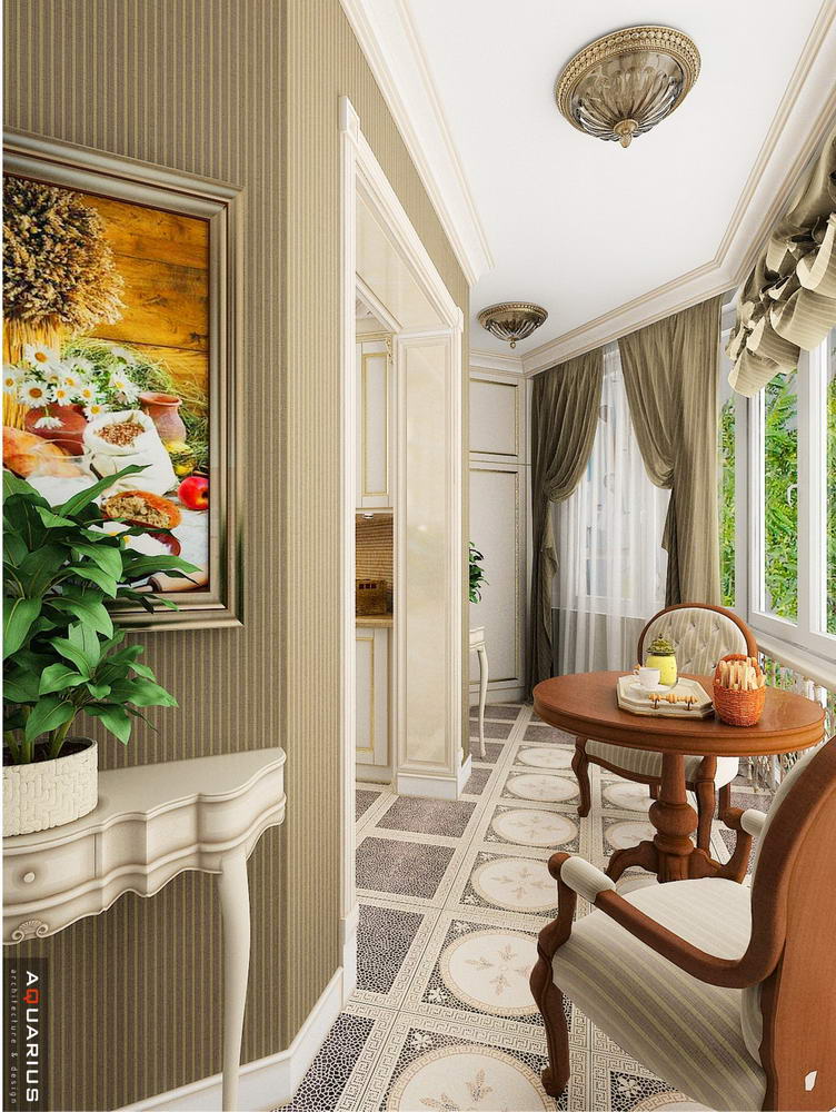 Красоту и роскошь классики не может заменить ни один стиль в интерьере. На 70 кв. метрах дизайнеры сумели воплотить роскошный классический интерьер в стиле барокко. Каждая деталь интерьера от обоев с растительным рисунком, до украшений подчеркивает изысканность выполненного дизайна. Украшением гостиной зоны выступает необычной формы альков, а так же камин классической формы.