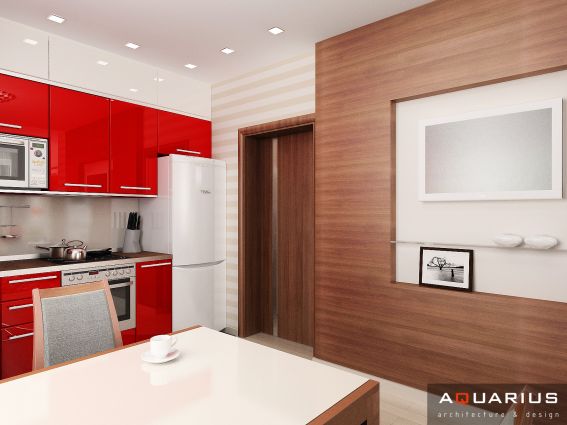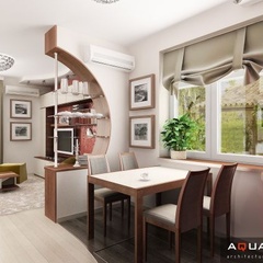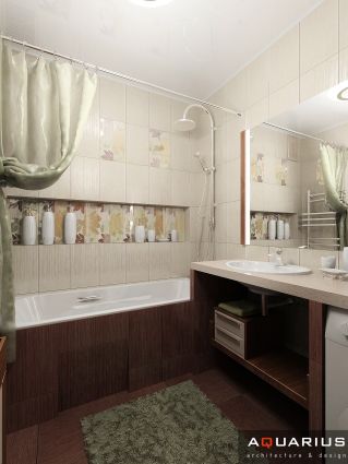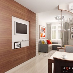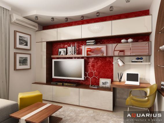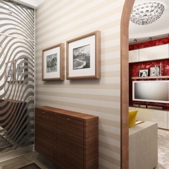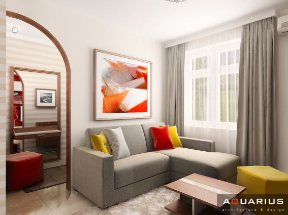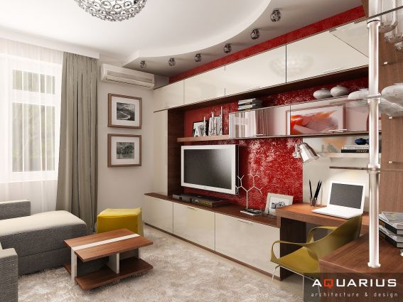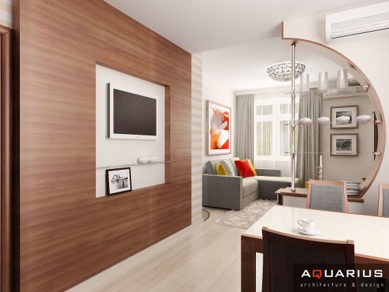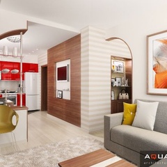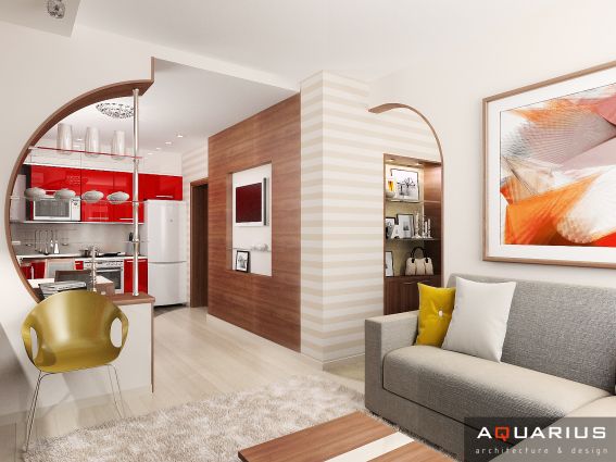 Интерьер однокомнатной квартиры, расположенной в городе Ростове-на-Дону по улице Калинина, выполнен в легком современном стиле. Каждой комнате придают индивидуальность портьеры и шторы, кухня совмещена с гостиной, что подчеркнуто единой цветовой гаммой.