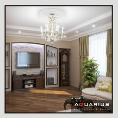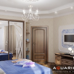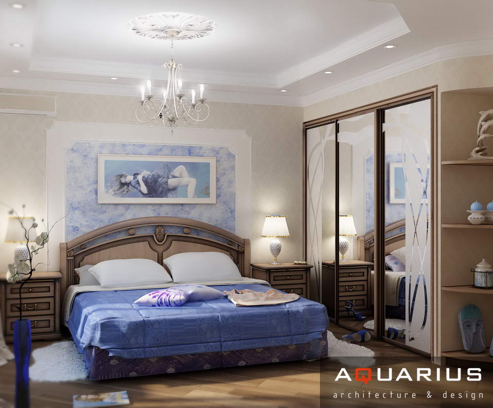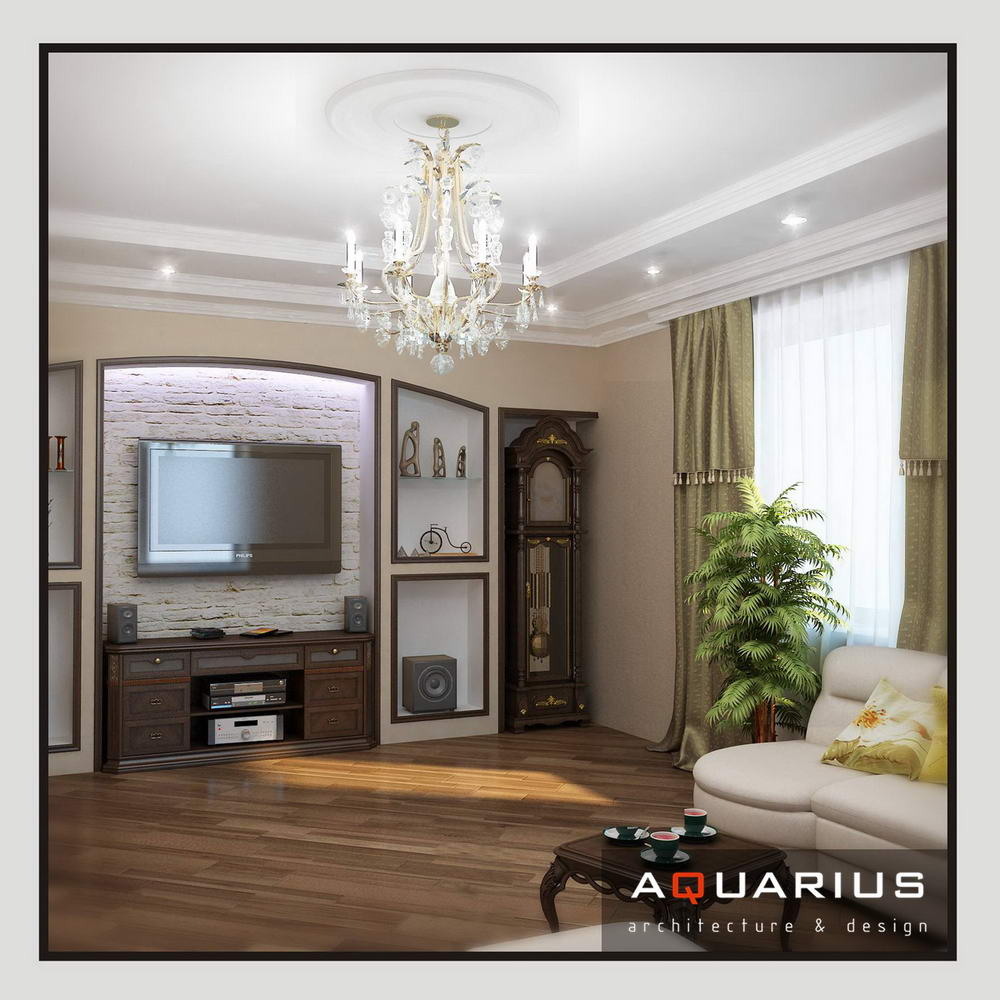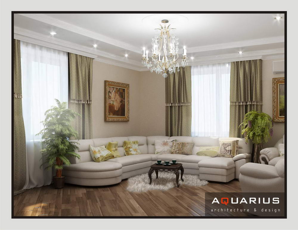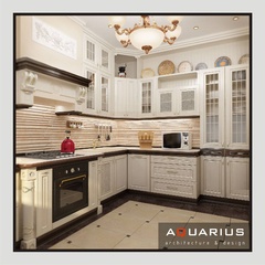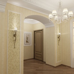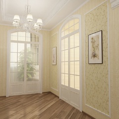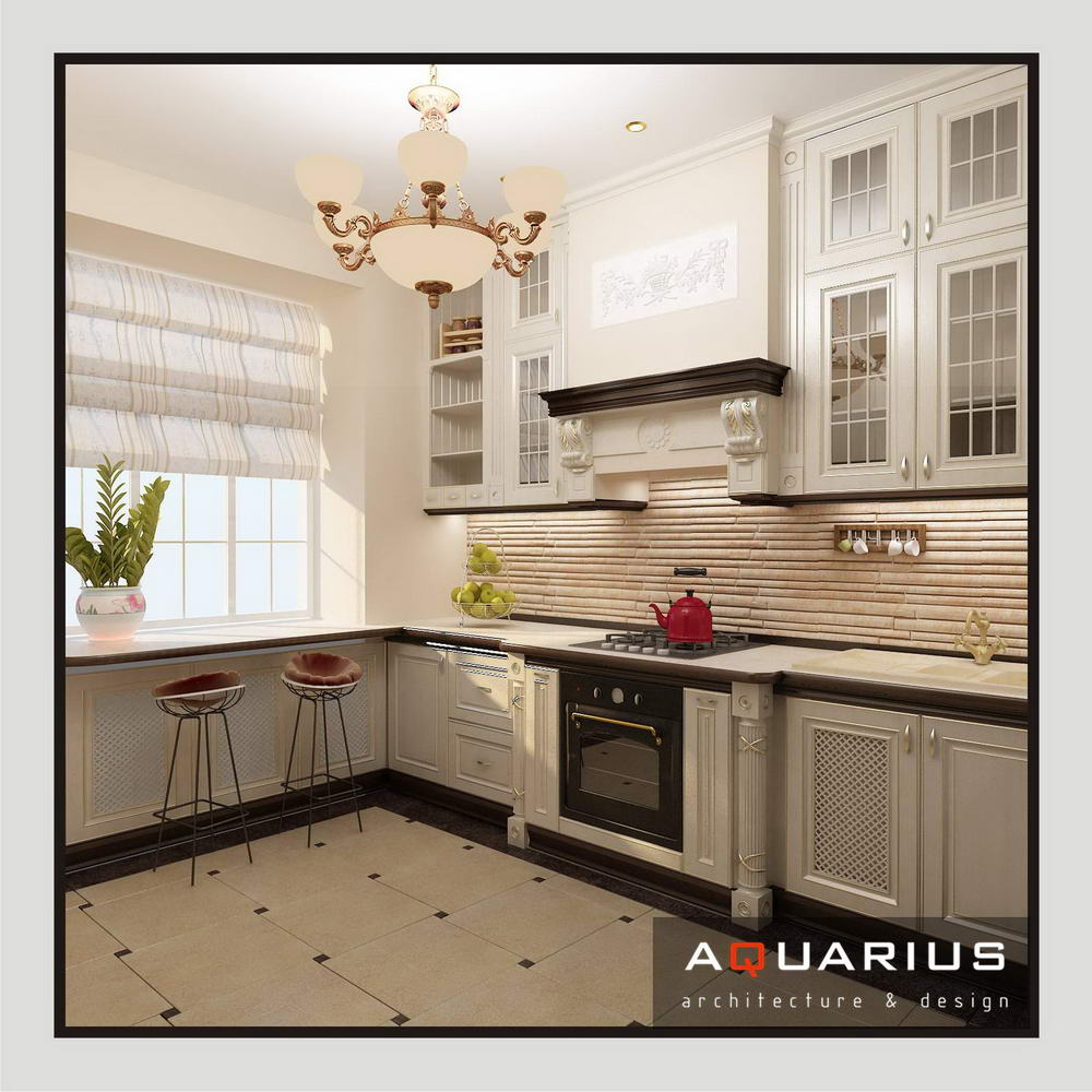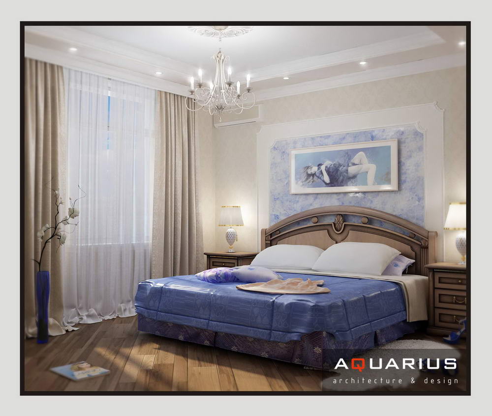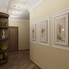 Дизайн для этой квартиры был выбран в классическом стиле. Столовая оформлена высокими шкафами для посуды, а также большим столом и темного дерева и мягкими стульями. В гостиной устроен камин, а большой мягкий диван дополняет атмосферу уюта и комфорта. Кабинет с классическими шкафами для книг и массивным столом, спальня с классической резной мебелью – все говорит о хорошем вкусе хозяев дома.