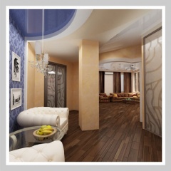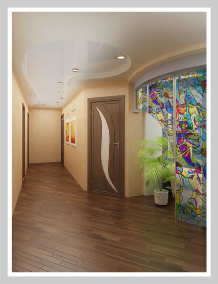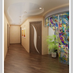 Просторная светлая квартира в Ростове-на-Дону выдержана в современном стиле. Современный дизайн квартиры, плавные линии потолочных конструкций перетекают на стены и повторяются по всей квартире, создавая единое стилевое пространство. Лаконичная мебель, просторная яркая кухня, использование витражей дополняют современный стиль помещений.