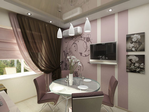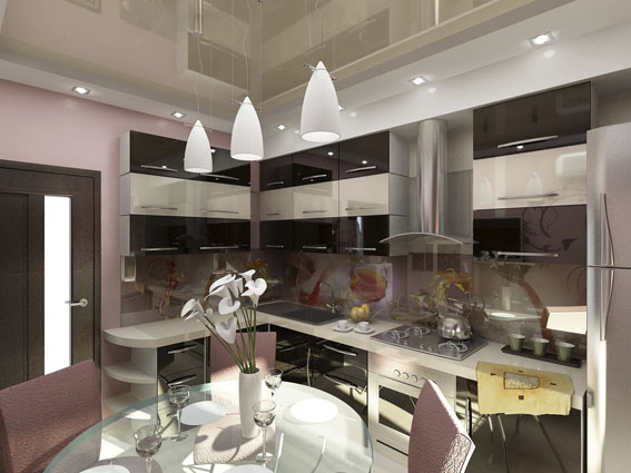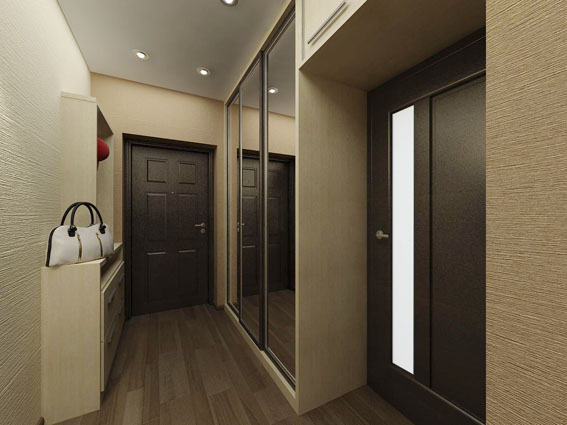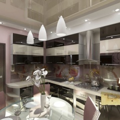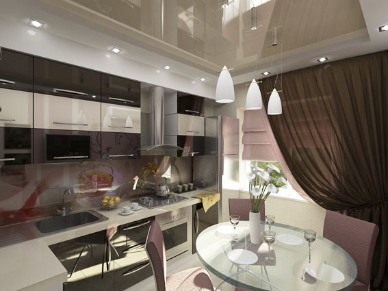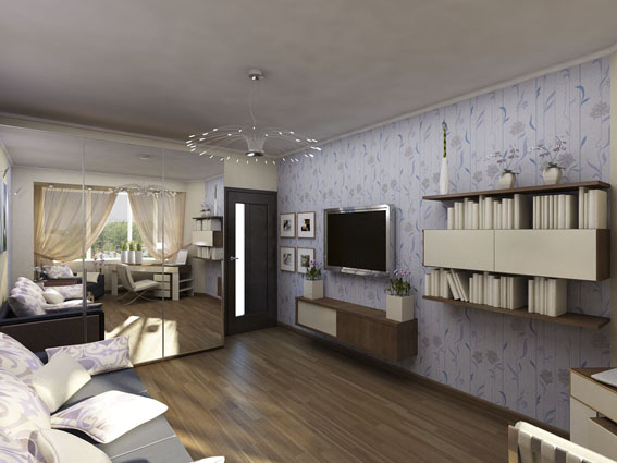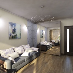 Трехкомнатная квартира по улице Горького в Ростове-на-Дону оформлена в современном стиле. Стекло и зеркала визуально увеличивают пространство. Теплые тона придают уют спальне, в гостиной использована более прохладная цветовая гамма.