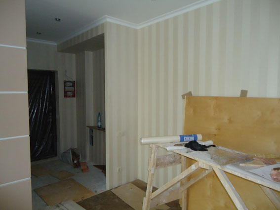 Производился ремонт трехкомнатной квартиры по улице Пушкинской в Ростове-на-Дону. Был выполнен ремонт и отделка стен, замена сантехники, коммуникаций, дверей и окон. В отделке применялись современные обои и плитка.