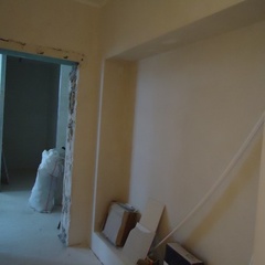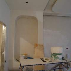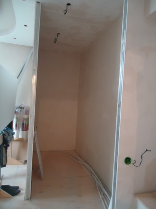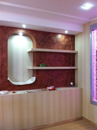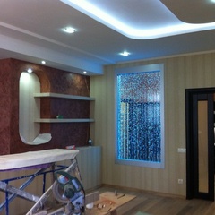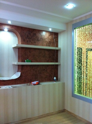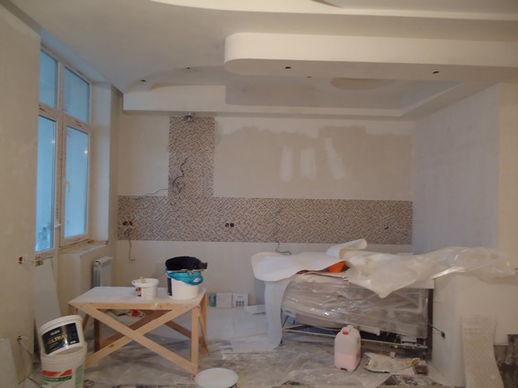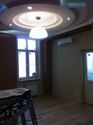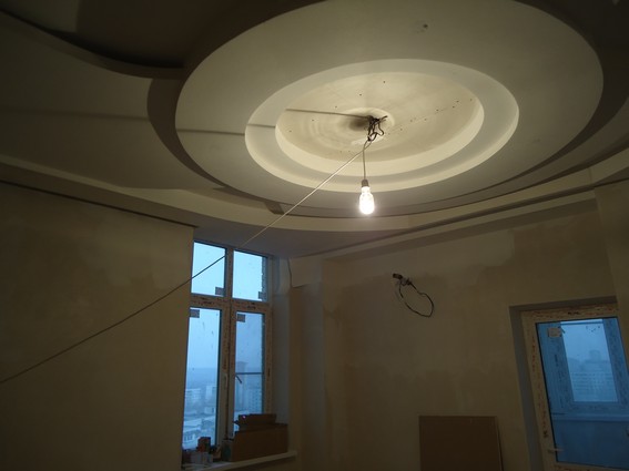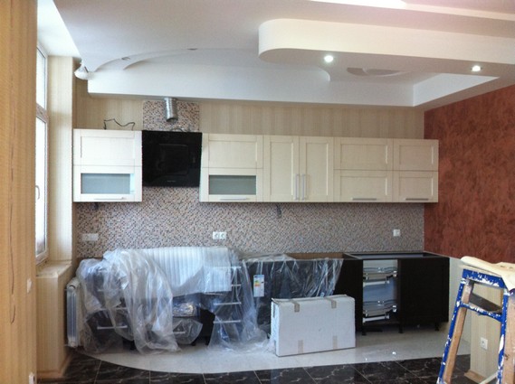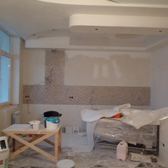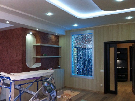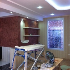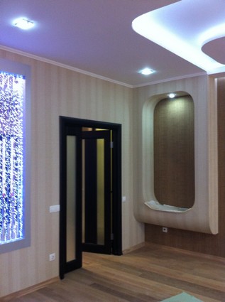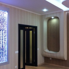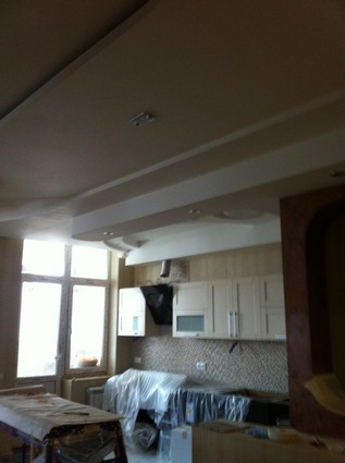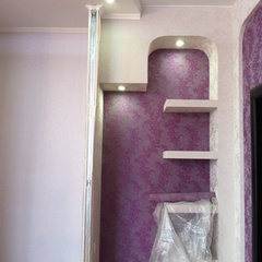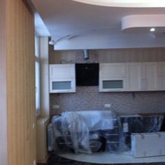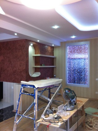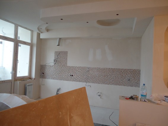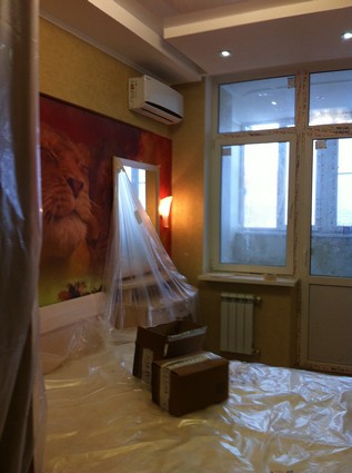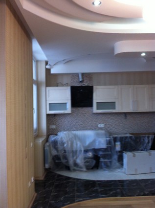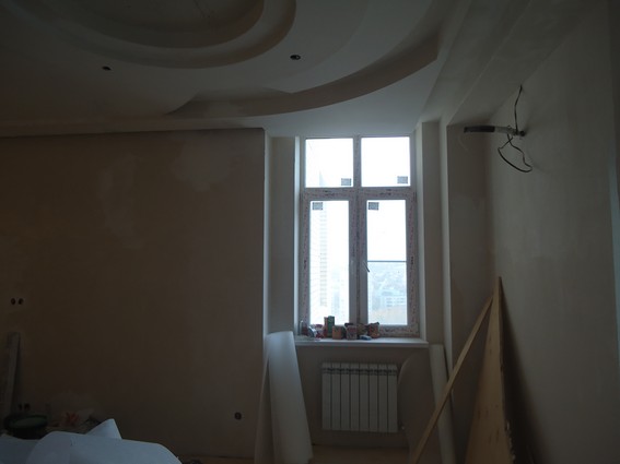 На данный момент объект находится в работе. Ремонт данной квартиры был начал с сооружения гипсокартоновых конструкций на потолке и специальных нишей в стенах. Оригинальные дизайнерские решения позволят интерьеру выглядеть современно и эргономично.