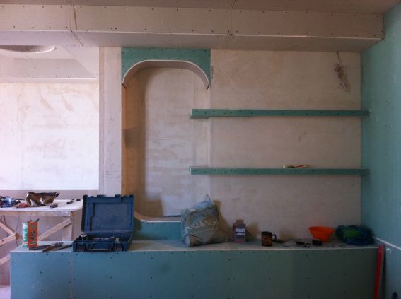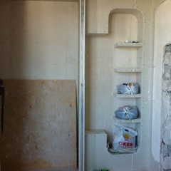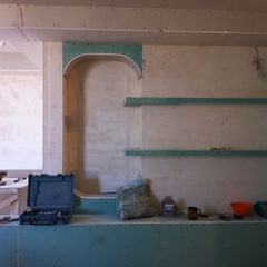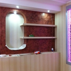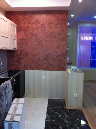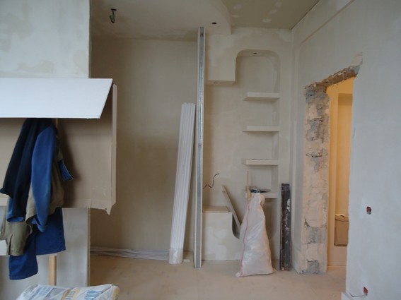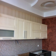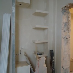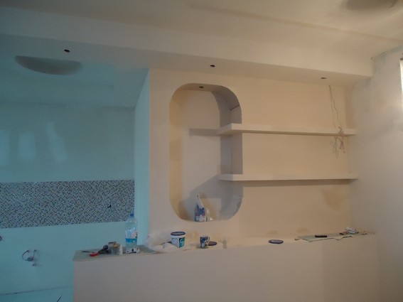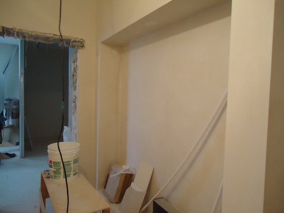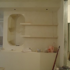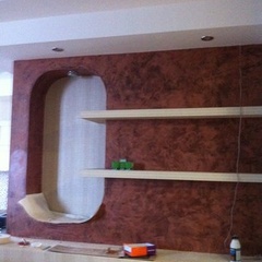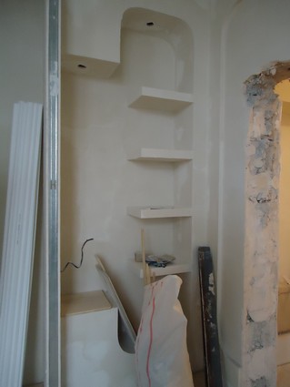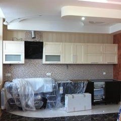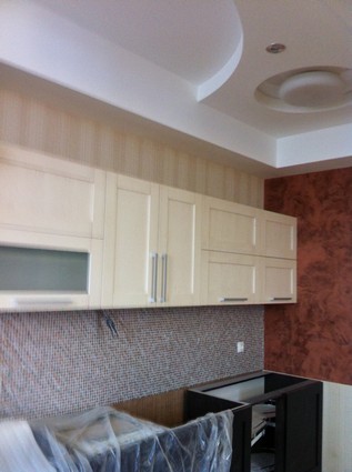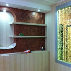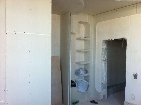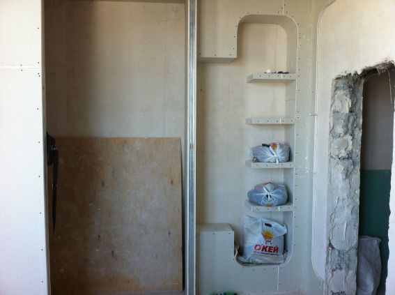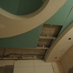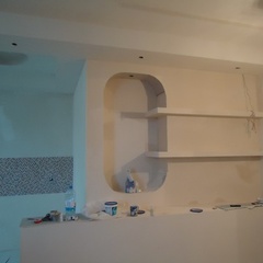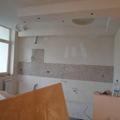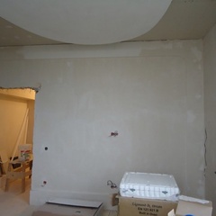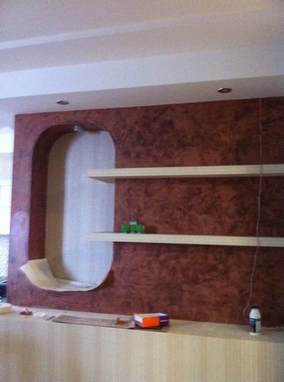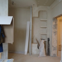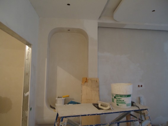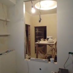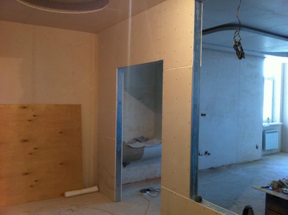На данный момент объект находится в работе. Ремонт данной квартиры был начал с сооружения гипсокартоновых конструкций на потолке и специальных нишей в стенах. Оригинальные дизайнерские решения позволят интерьеру выглядеть современно и эргономично.